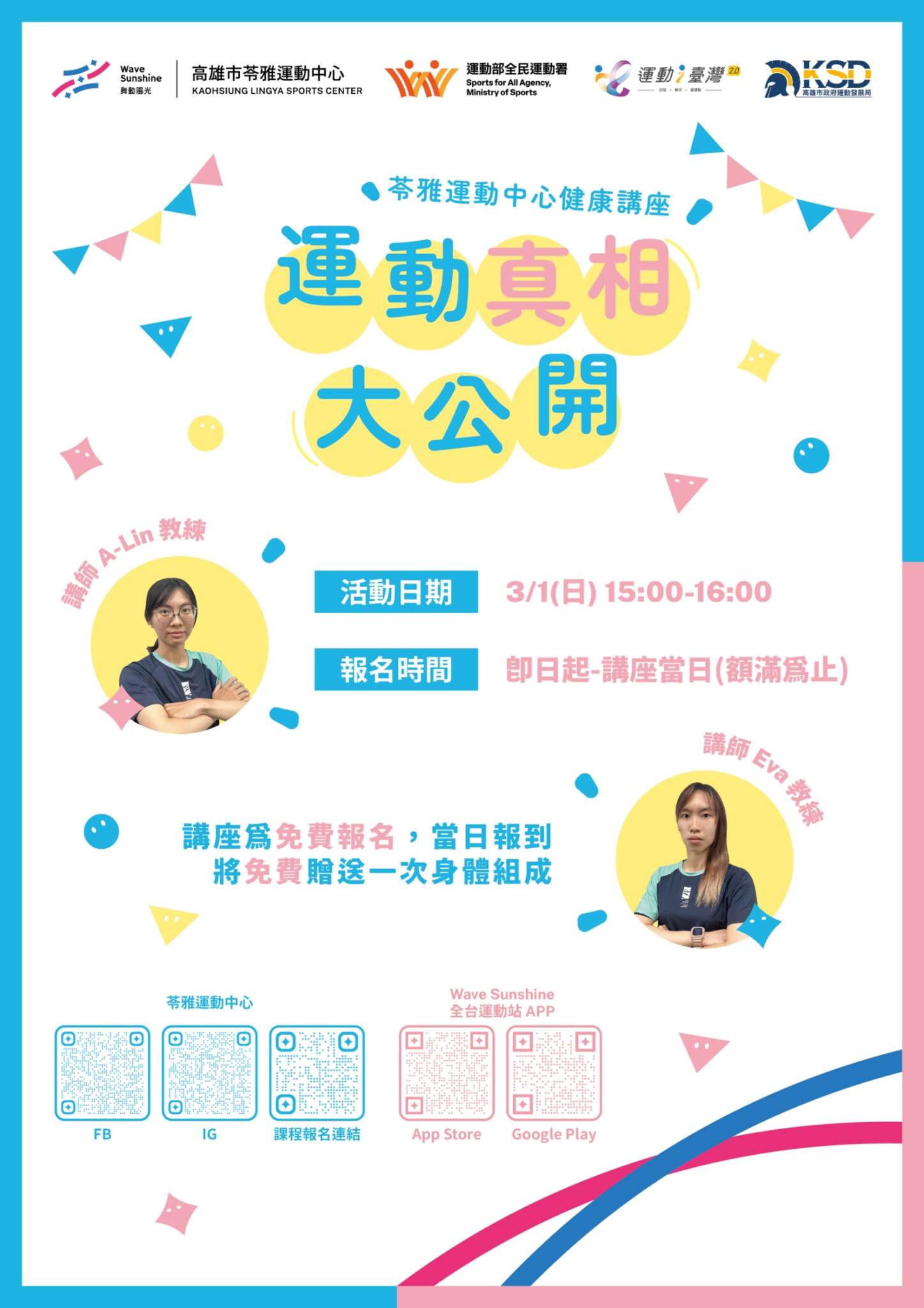 ☀︎ 講座費用 : 免費報名 !當日報到將贈送一次身體組成分析檢測!